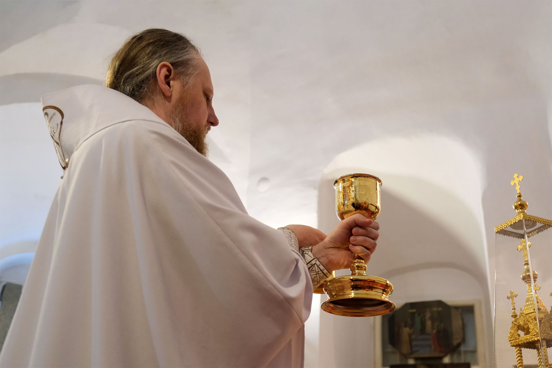 3 мая 2020 года, в Неделю 3‑ю по Пасхе, святых жен-мироносиц, епископ Переславский и Угличский Феоктист совершил раннюю Литургию в приделе апостола Филиппа Владимирского кафедрального собора.