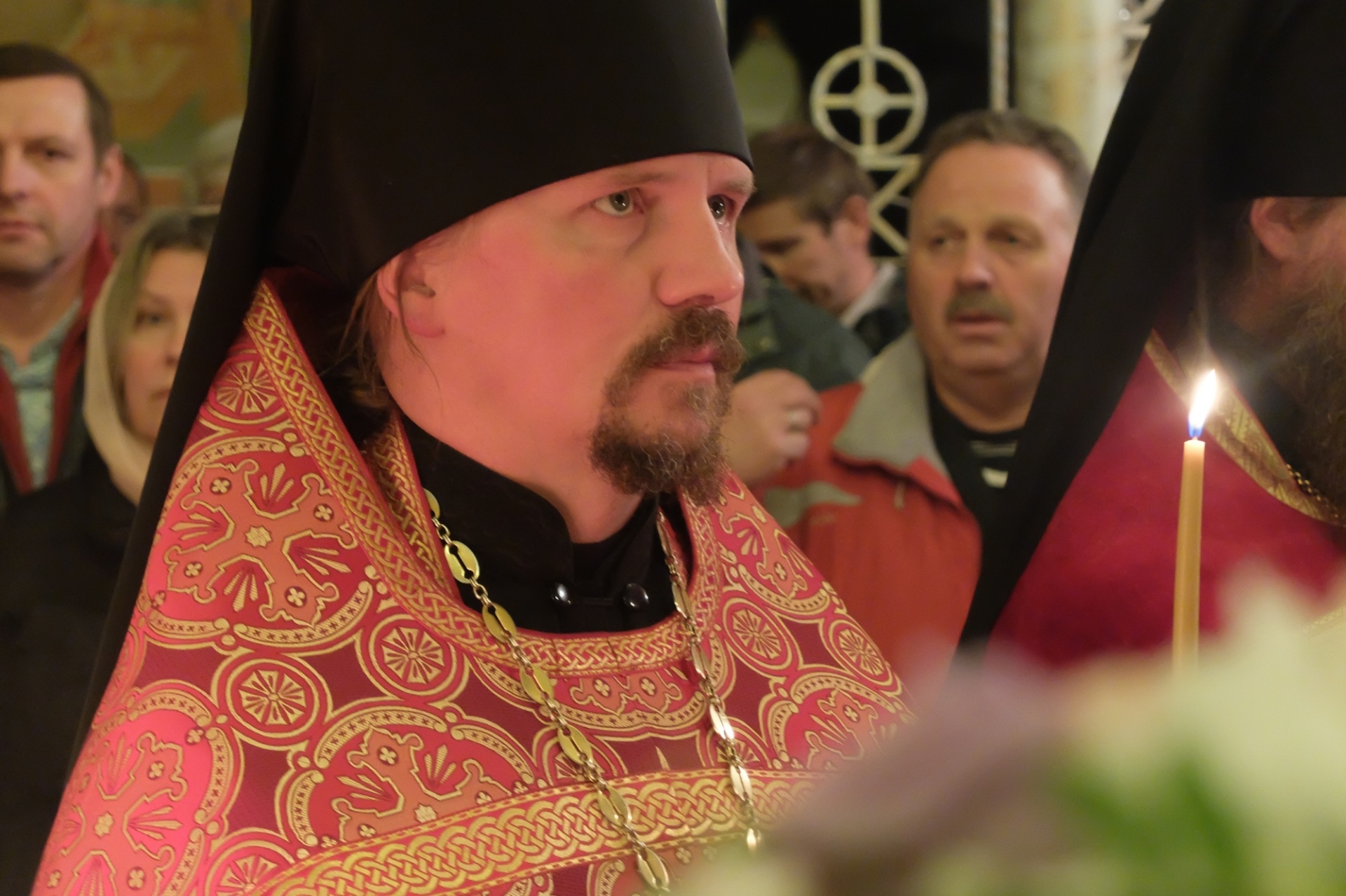 — Дорогой отец Димитрий, дорогие братья и сестры, я вас сердечно поздравляю с днем памяти великомученика Никиты Готфского, в честь которого был освящен этот храм.