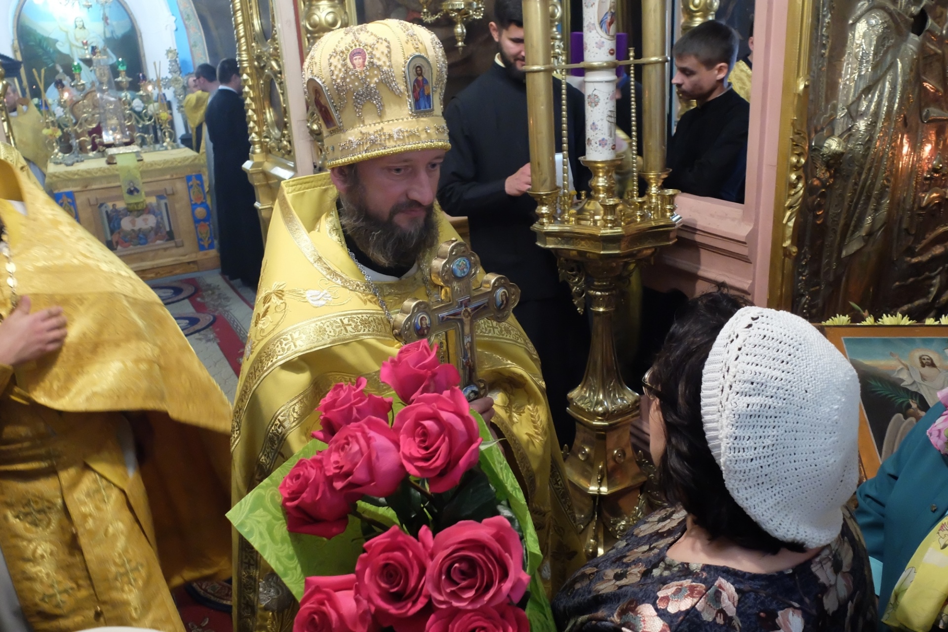 — Дорогой владыка, мы очень рады, что в этот юбилейный для нашего храма год, когда он отмечает 250 лет со дня своего освящения, вы возглавили богослужение. Тот факт, что вы открываете эти торжества, имеет для нас очень большое значение. Дай Бог, чтобы Покров Царицы Небесной всегда был в вашей жизни.