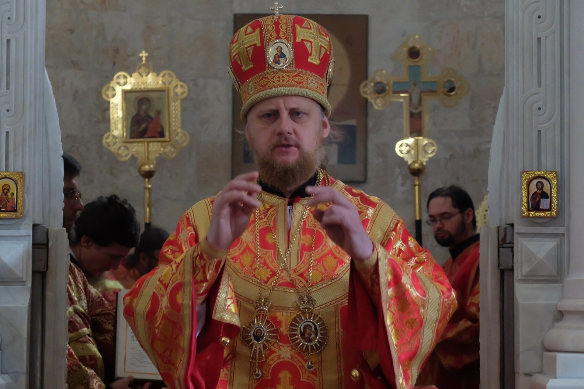 — Дорогой игумен Пантелеимон, дорогие отцы, матушка Евстолия, братия и сёстры, собравшиеся в этом храме.