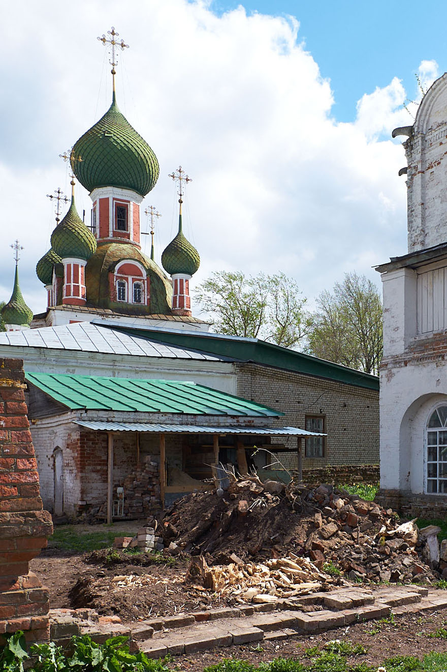 За многие годы вокруг уникального храма накопилось большое количество мусора —ветки, битое стекло, кирпичи и многое другое. Уборку территории начали еще до Пасхи. Настоятель и прихожане выходили на субботники, собирали мусор в кучи, которые потом вывезли городские службы.