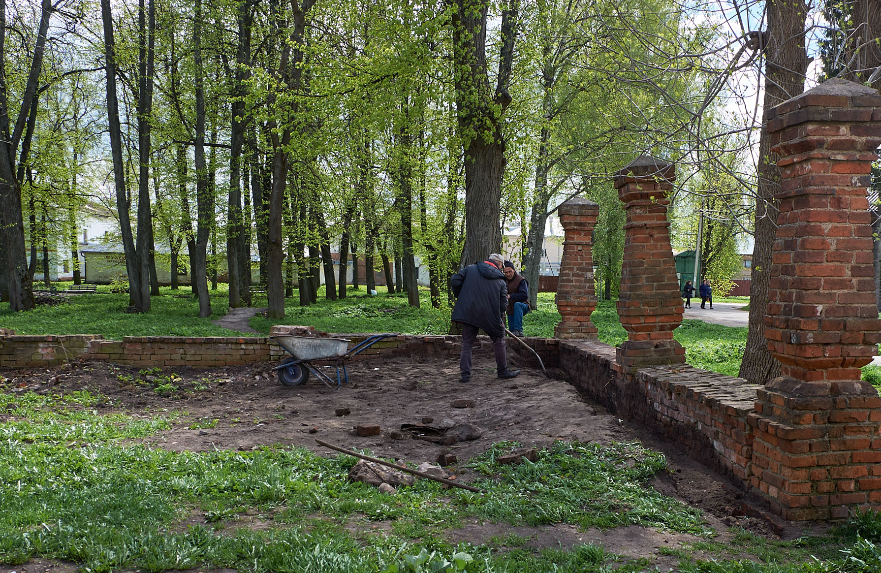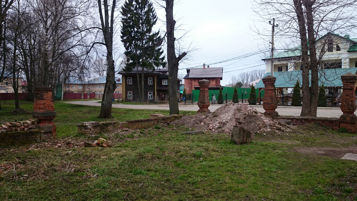 — Из-за того, что вокруг храма долгое время не убирали, горы слежавшегося мусора скрыли историческую ограду, — рассказал завхоз храма Олег Иванович Филимонов, — теперь мы убираем этот слой, выкорчёвываем трухлявые пни, чтобы вокруг храма было чисто и аккуратно.