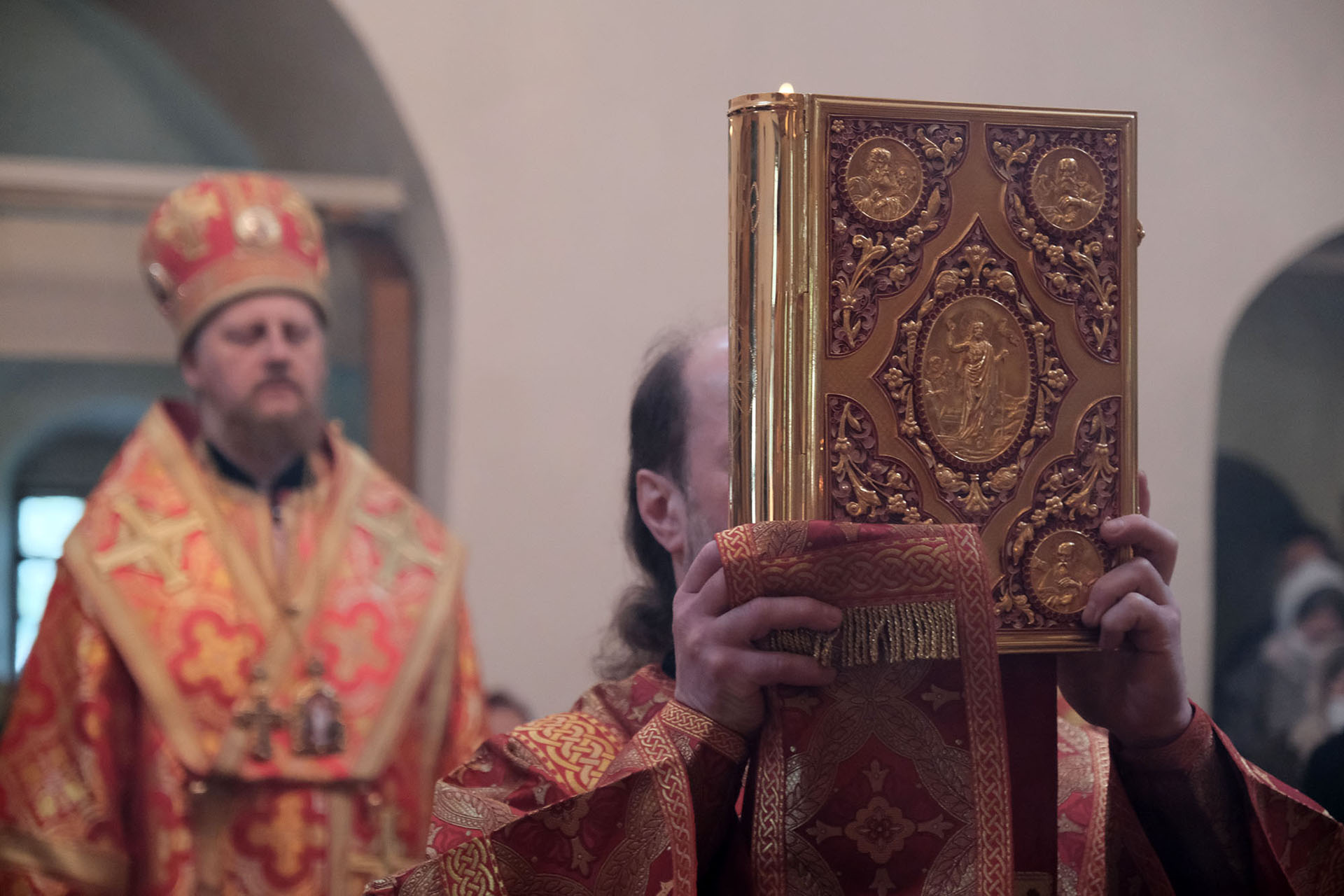 Мне бы хотелось вместе с вами поразмышлять о связи празднуемых событий с рядовым евангельским чтением, которое сегодня мы слышали. События, которые описаны в 7‑й и 8‑й главах Евангелия от Иоанна, происходят во время праздника кущей в Иерусалиме. Заключительная часть 8‑й главы, фрагмент из которой мы слышали, была произнесена Христом Спасителем в Иерусалимском храме в последний, восьмой день этого великого праздника, в день, который называется Шмини Ацерет.