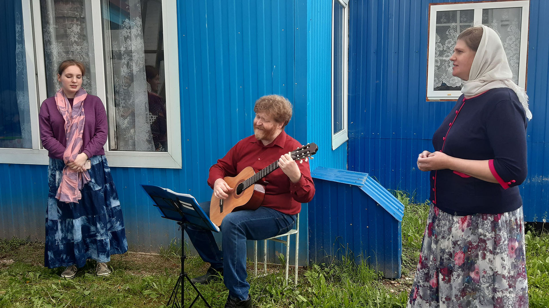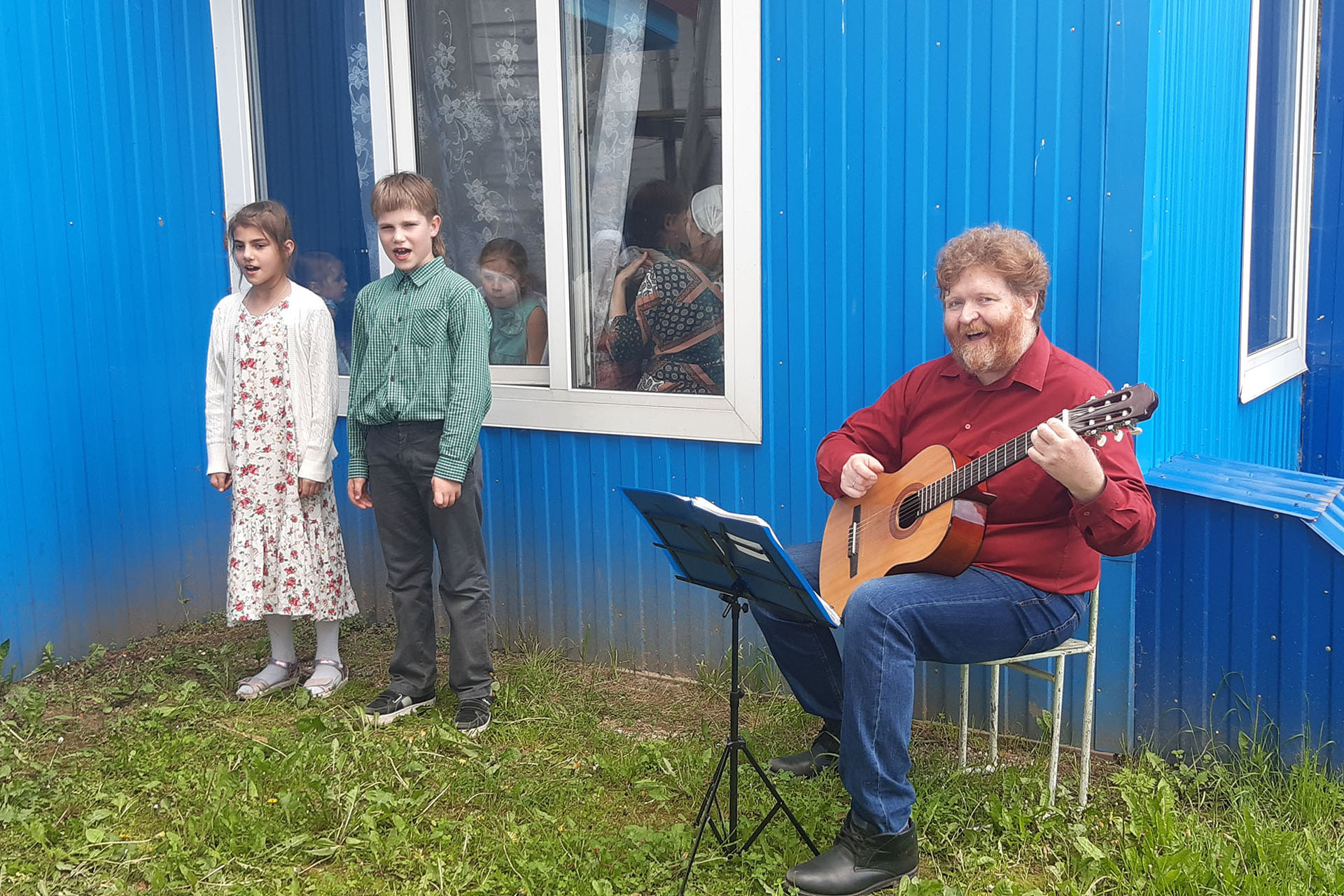 — Я сочиняю песни с 15 лет, — говорит Игорь, — для меня это такая же потребность самовыражения, как быть актёром. К сожалению, не часто получается выступать с концертами, в основном, я, конечно, актёр, поэтому очень благодарен настоятелю отцу Игорю Залесскому за возможность выступить перед зрителями.