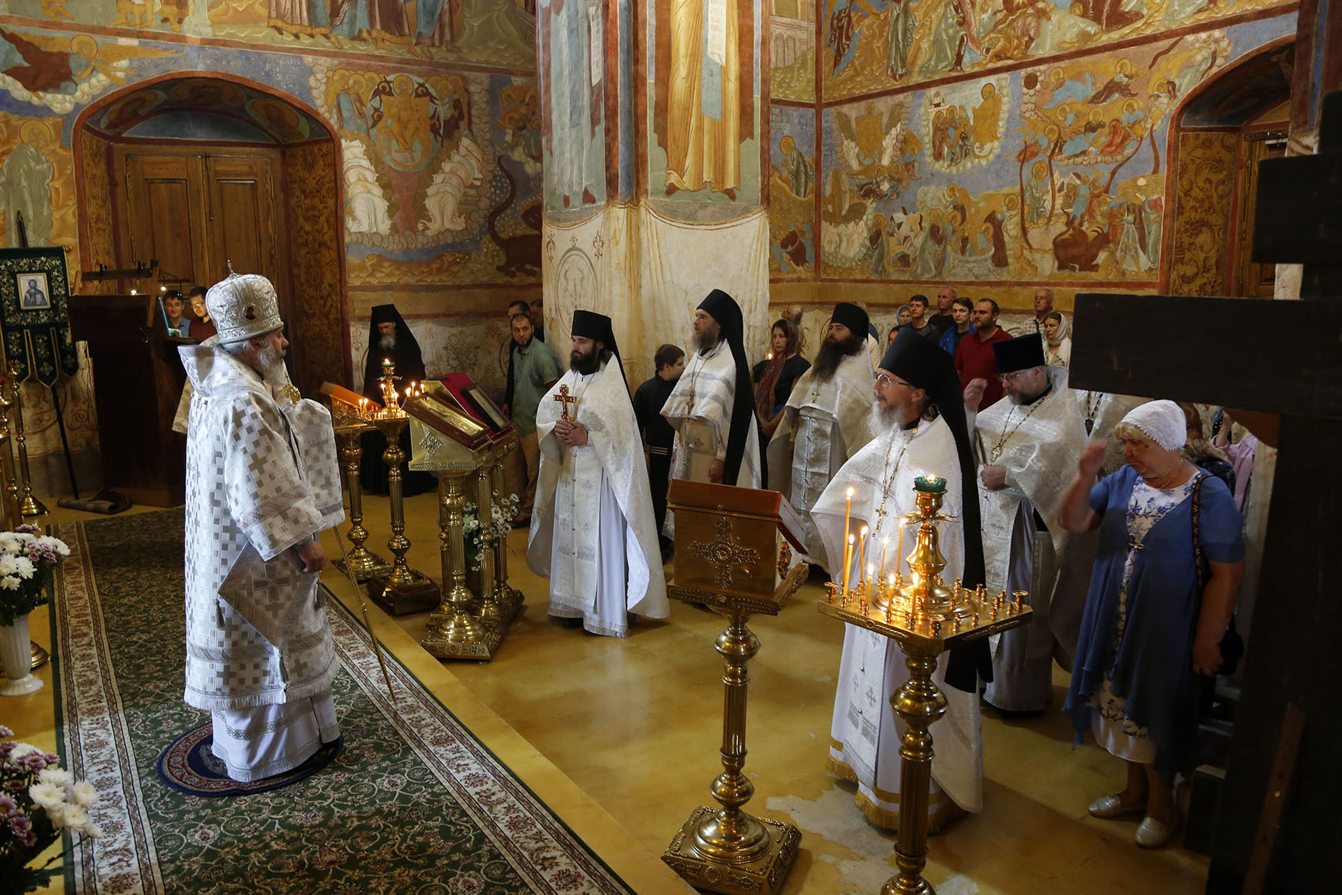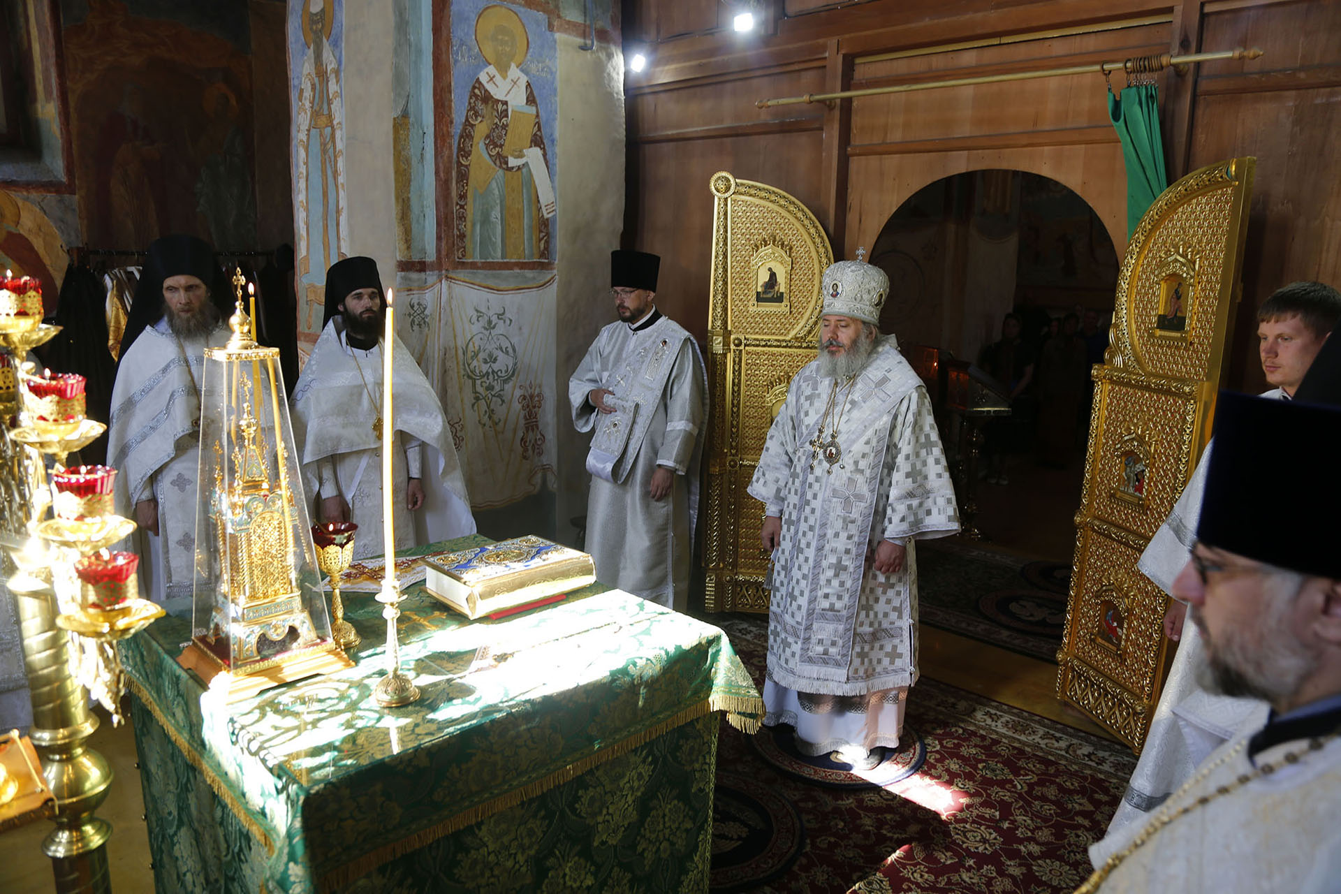 Ему сослужили настоятель обители игумен Пантелеимон (Королёв), братия обители в священном сане, а также настоятель Свято-Успенского Пошехонского Адрианова монастыря игумен Платон (Шуняев).
