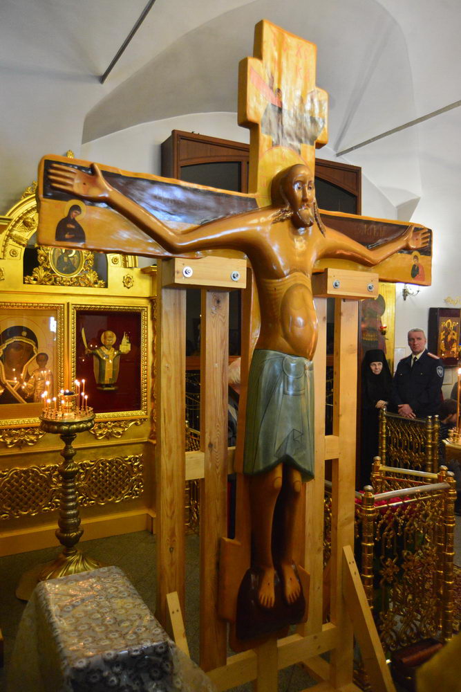 Поздравляю с днём памяти святителя Иоанна Златоуста, в честь которого освящён этот храм. Все, кто знаком с историей Годеновского Креста знают, что его явление сопровождалось присутствием святителя Николая Чудотворца. И сегодня мы можем провести параллель, ведь святитель Николай никуда не ушёл, он остаётся здесь, потому что этот храм является подворьем Никольского монастыря Переславля. И имя святого Иоанна Златоуста тоже здесь неслучайно.