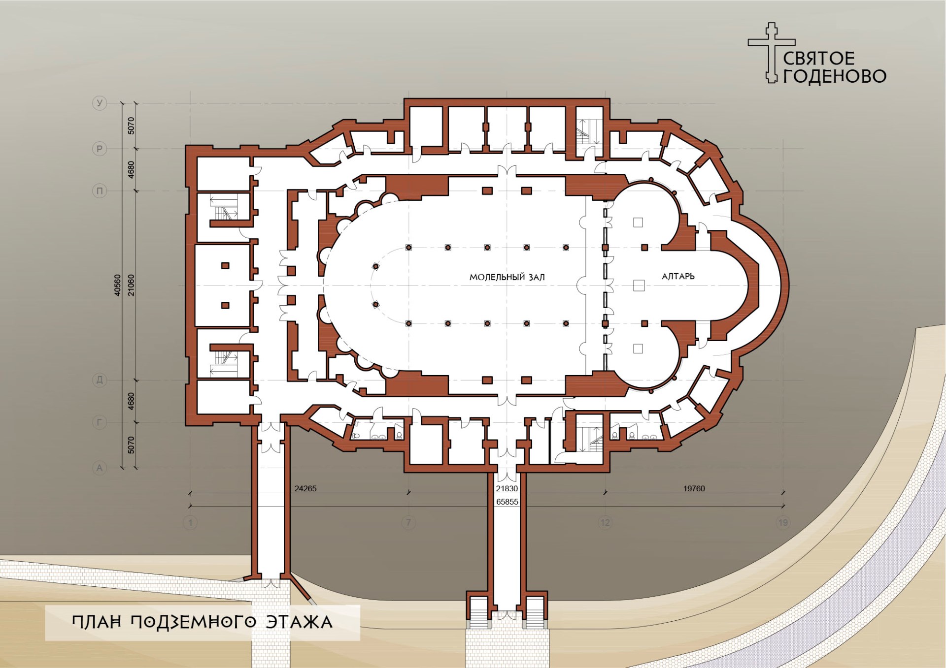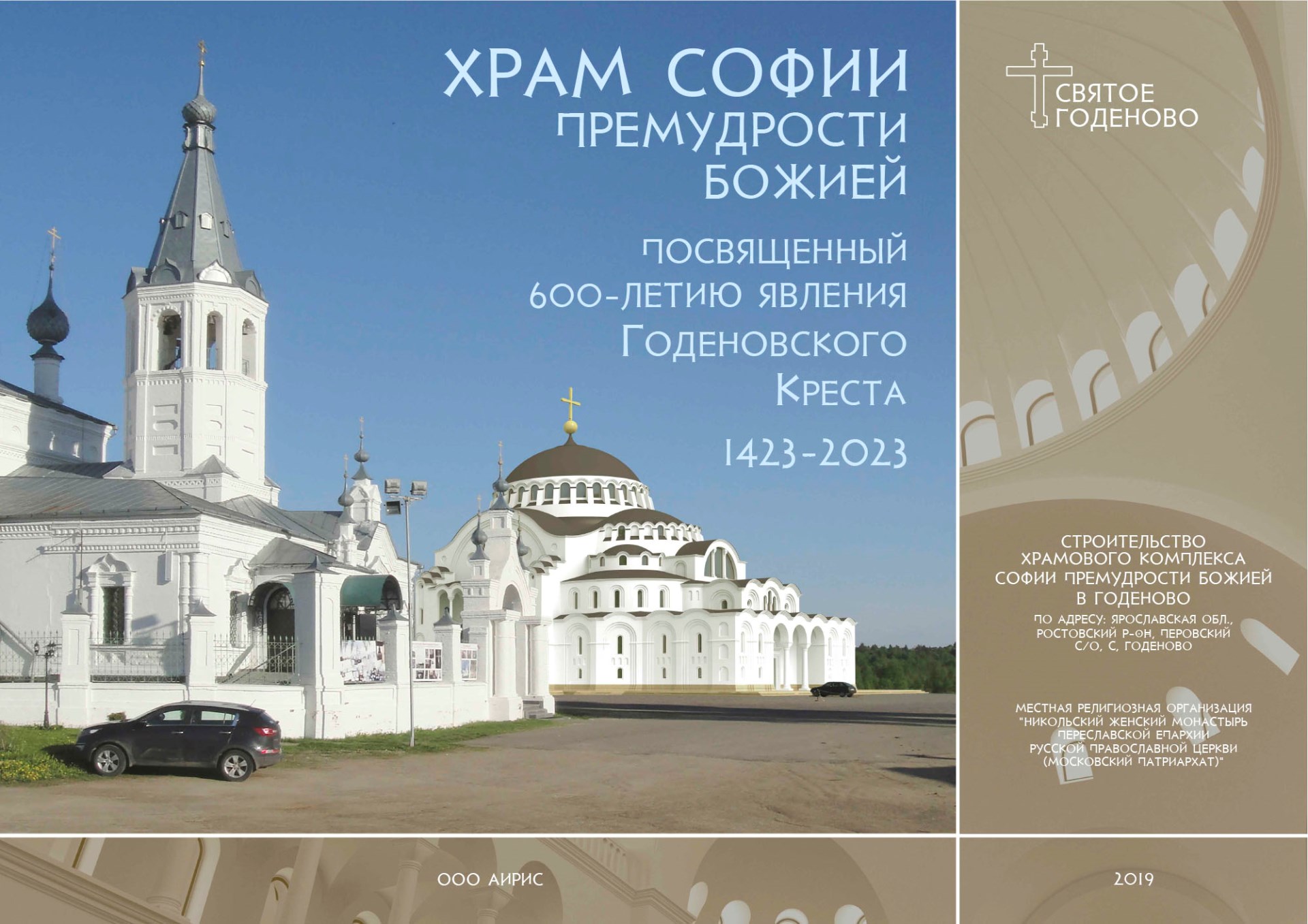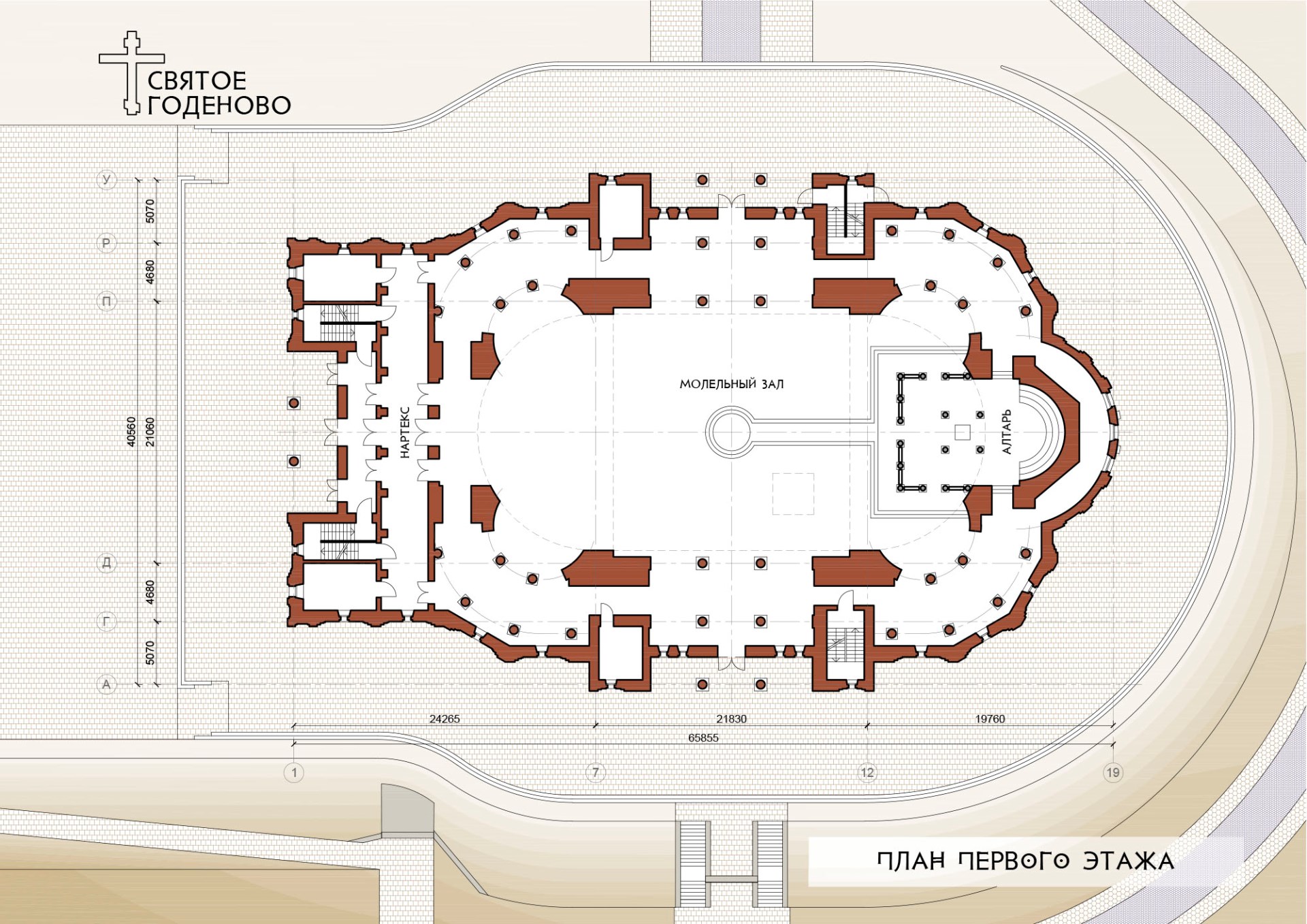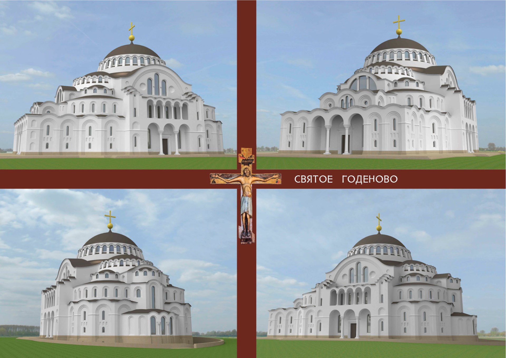 Алексей Анатольевич проникся нашими идеями и творчески подошёл к процессу проектирования. Наш храм уменьшен относительно оригинала в пропорциях золотого сечения, то есть примерно в полтора раза. Кроме того, в размерах храма учтены размеры Годеновского Креста: ширина купола ровно в десть раз больше ширины креста — 19,5 метров.