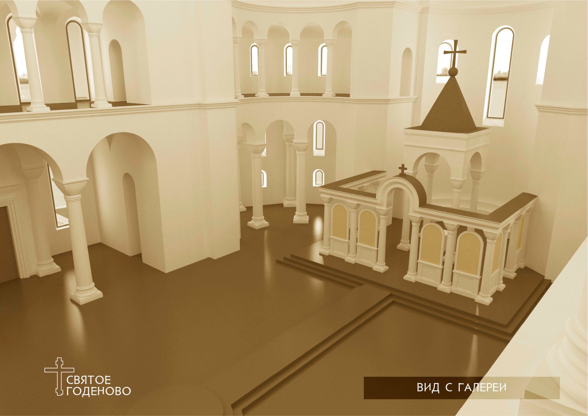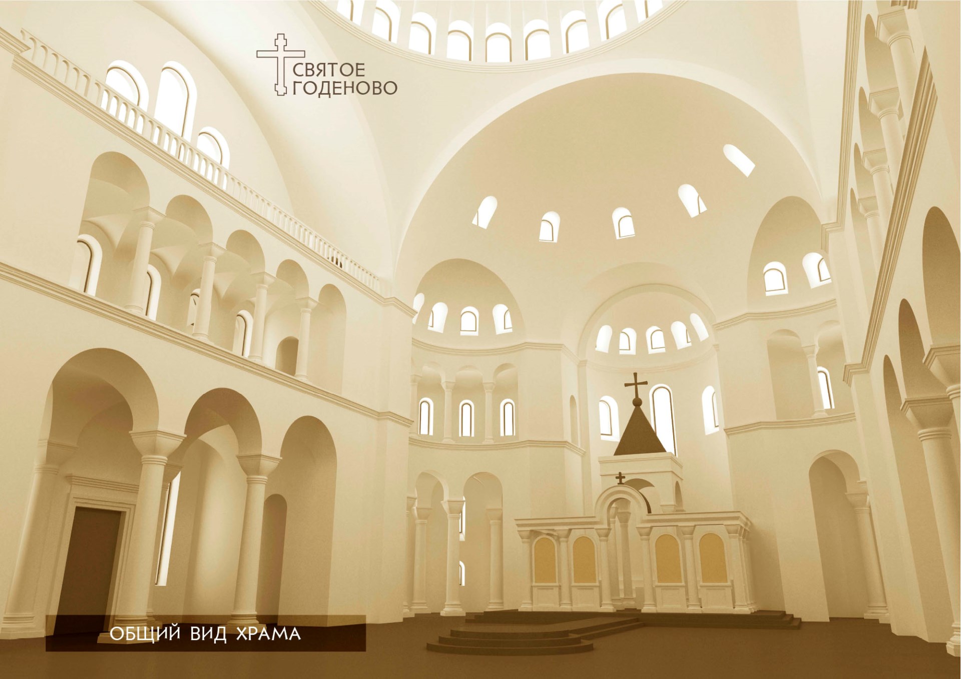 Верхний храм будет посвящён Святой Софии, Премудрости Божией. Планируется, что его стены украсит мозаика. Алтарь нижнего храма будет освящён в честь святых царственных страстотерпцев.