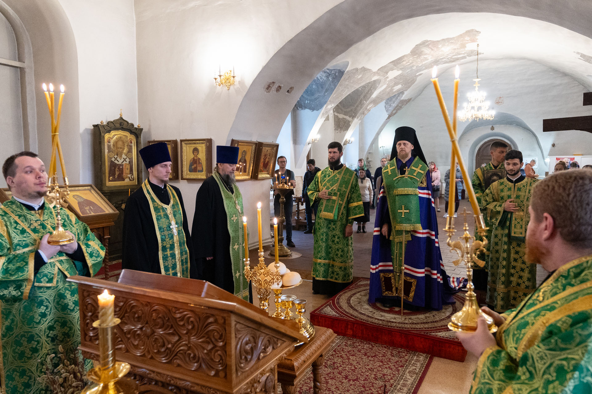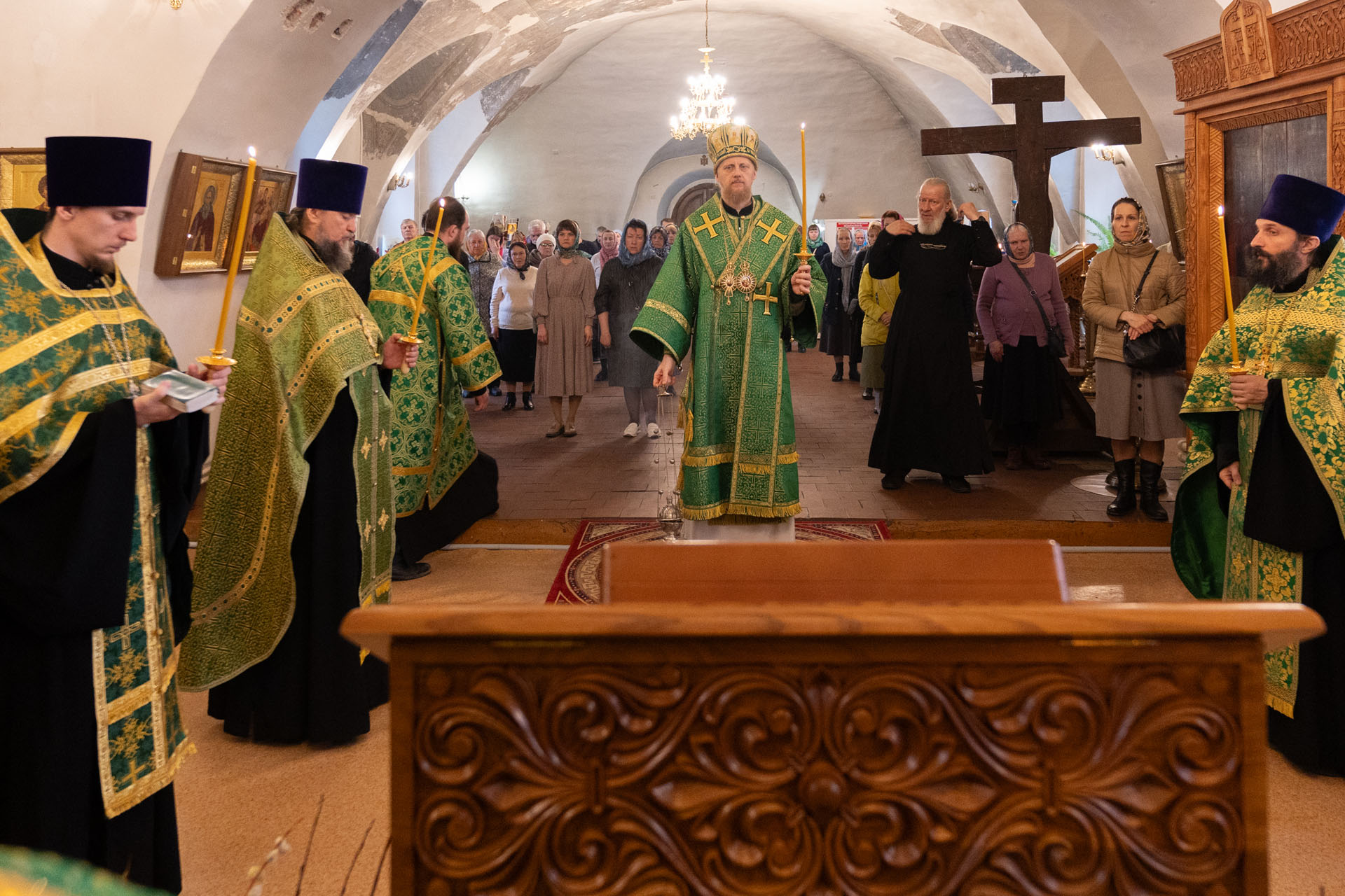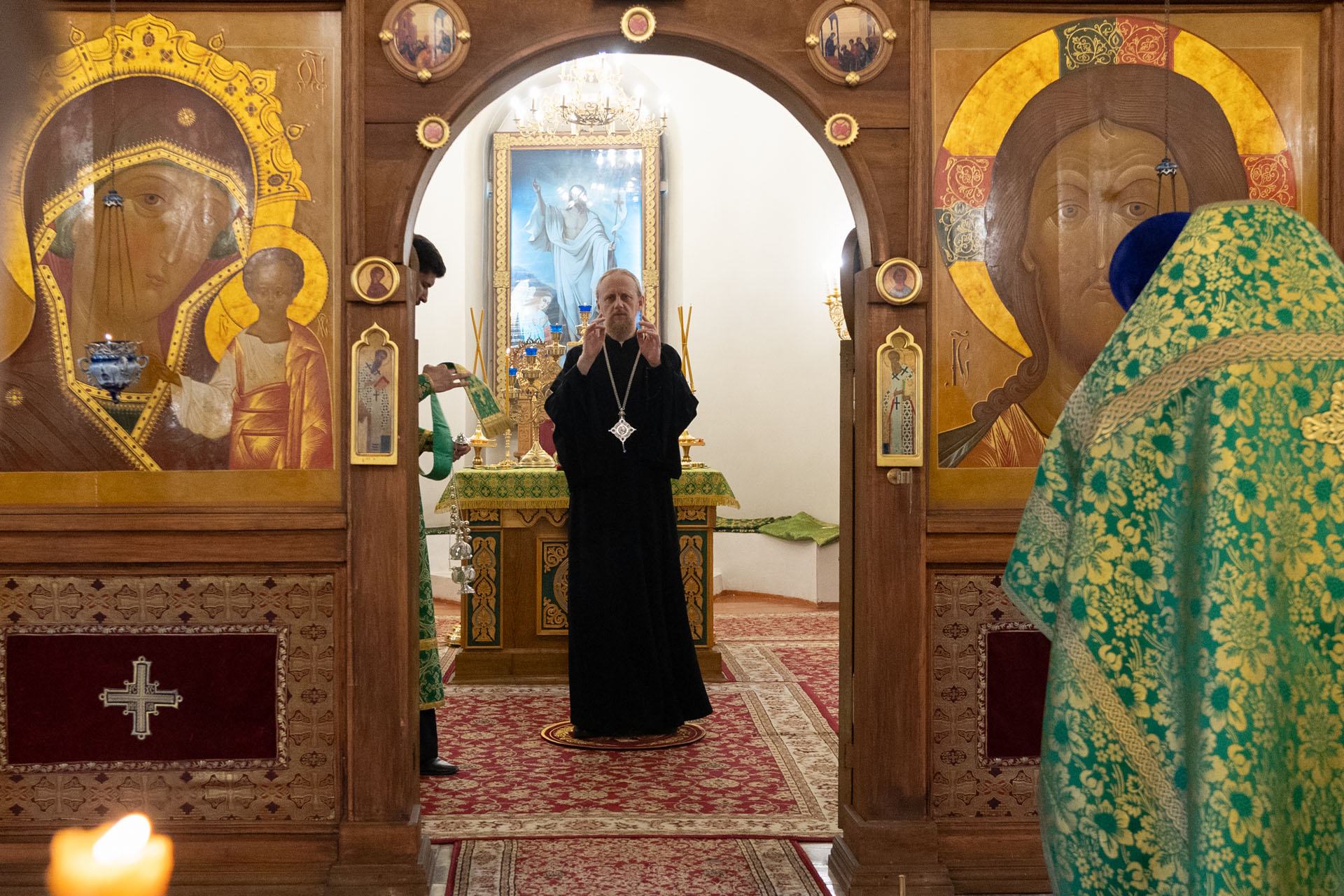 Его Преосвященству сослужили: почётный настоятель собора протоиерей Андрей Кульков, настоятель собора протоиерей Алексей Морозов, священник Алексей Талалаев, диакон Алексей Герасимов, диакон Сергий Танчинец.