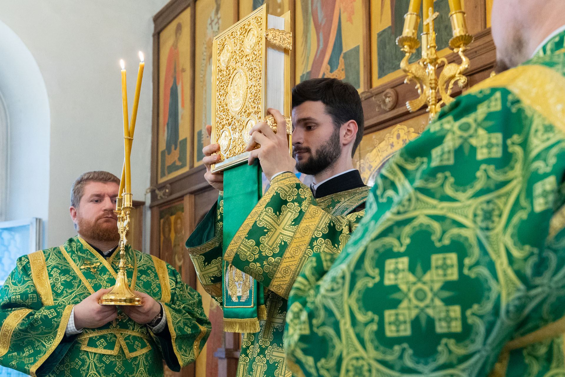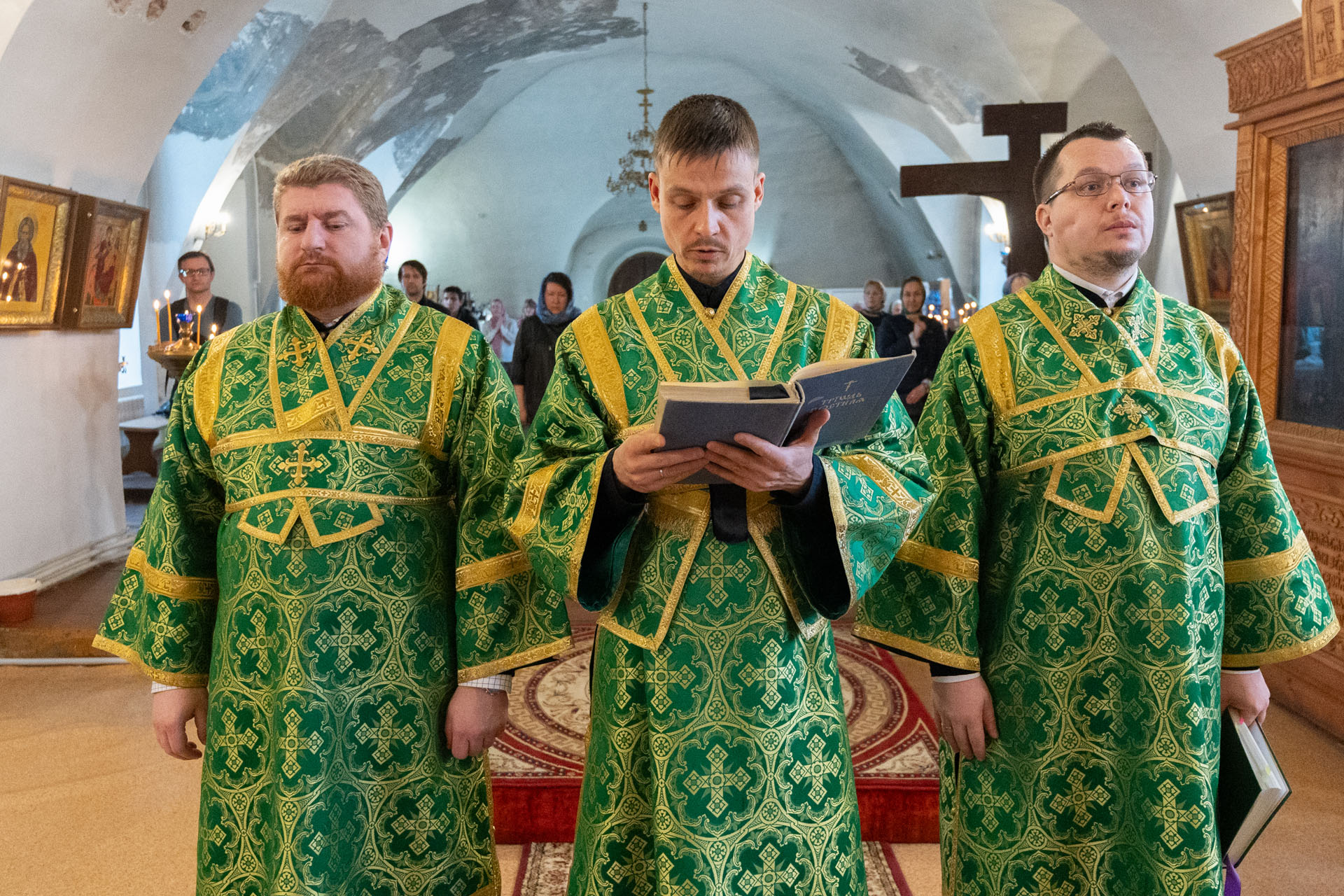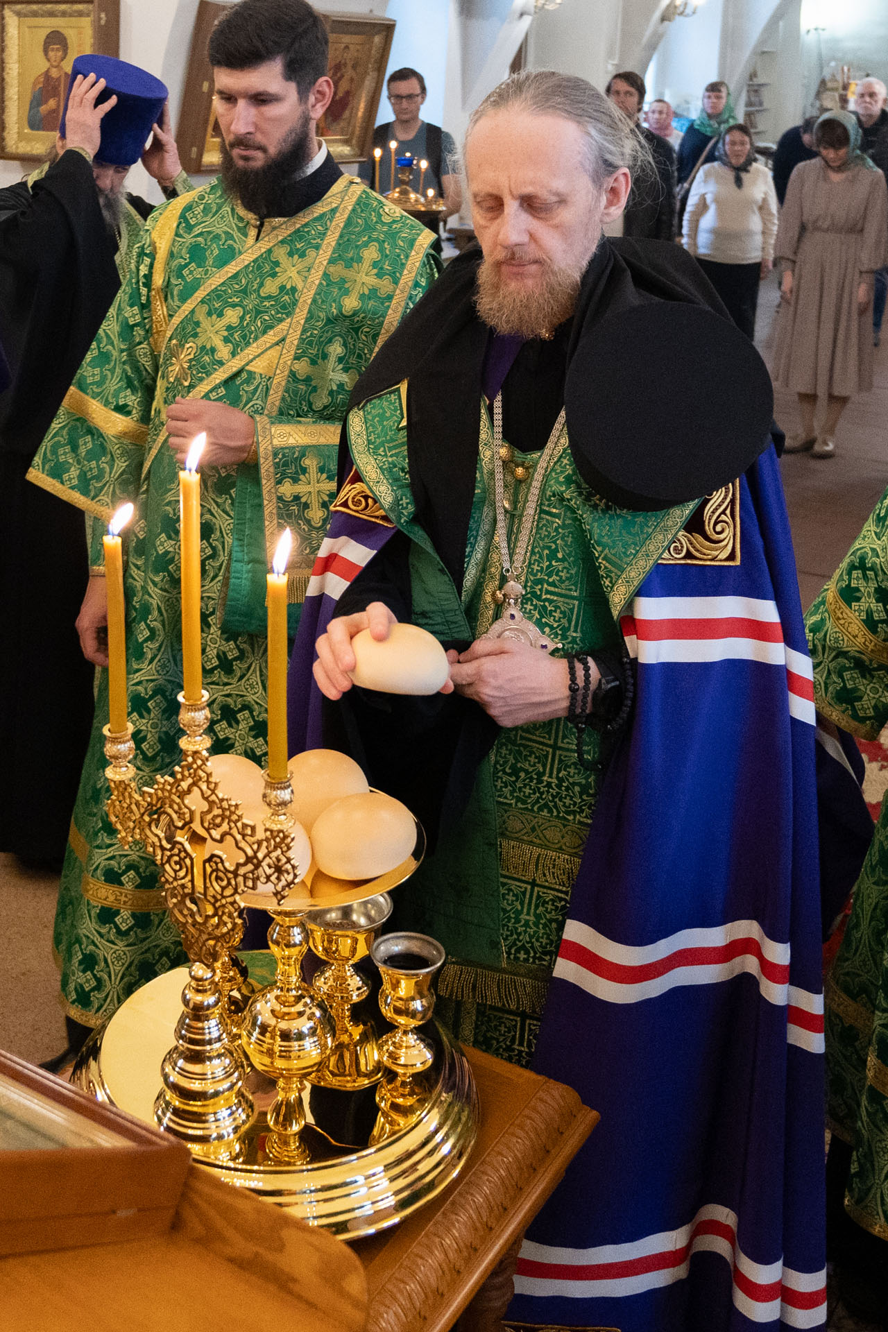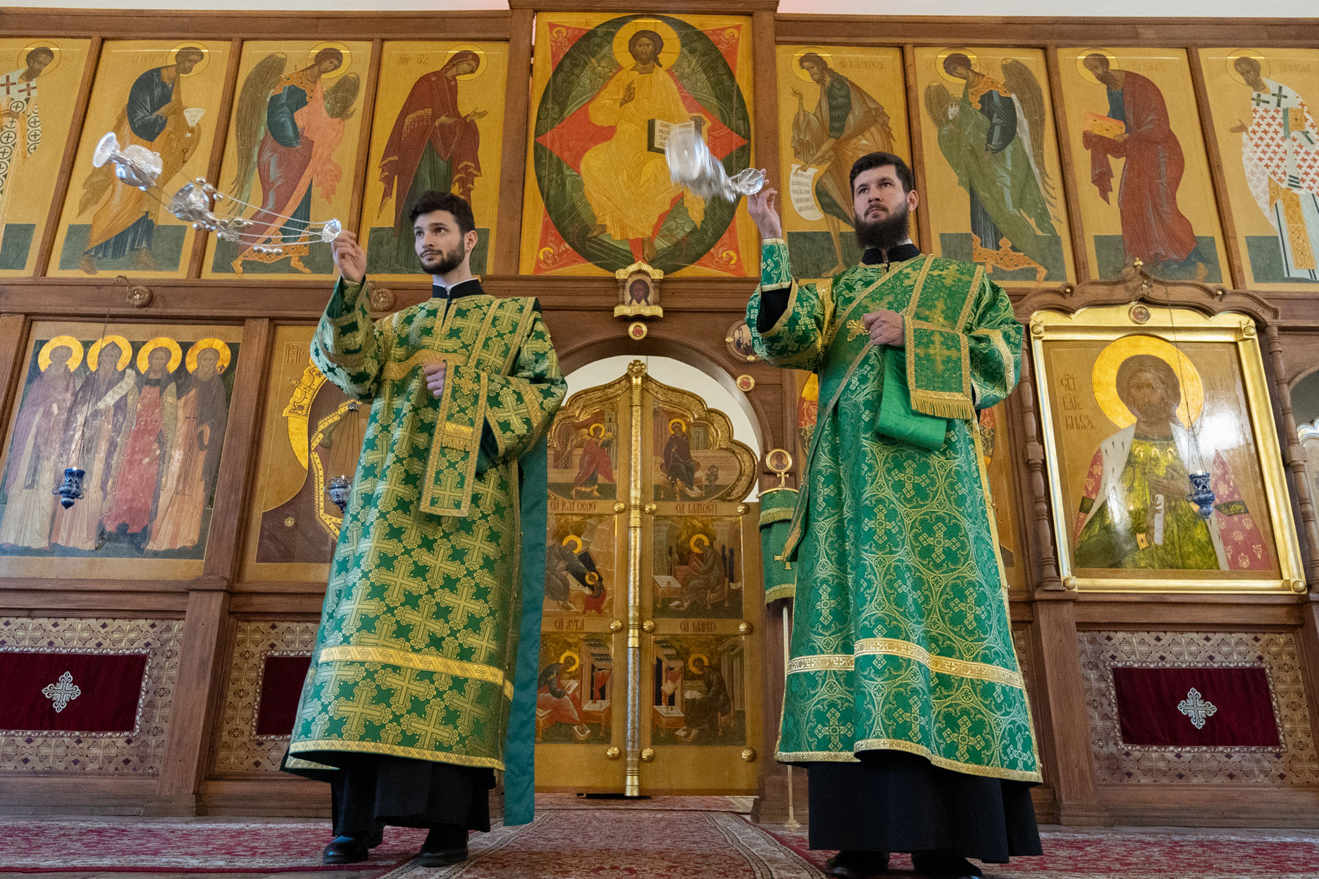 Его Преосвященству сослужили: почётный настоятель собора протоиерей Андрей Кульков, настоятель собора протоиерей Алексей Морозов, священник Алексей Талалаев, диакон Алексей Герасимов, диакон Сергий Танчинец.