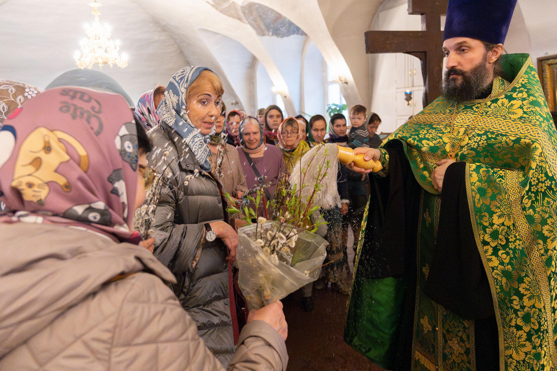 По традиции, после чтения Евангелия было совершено освящение вербных ветвей.