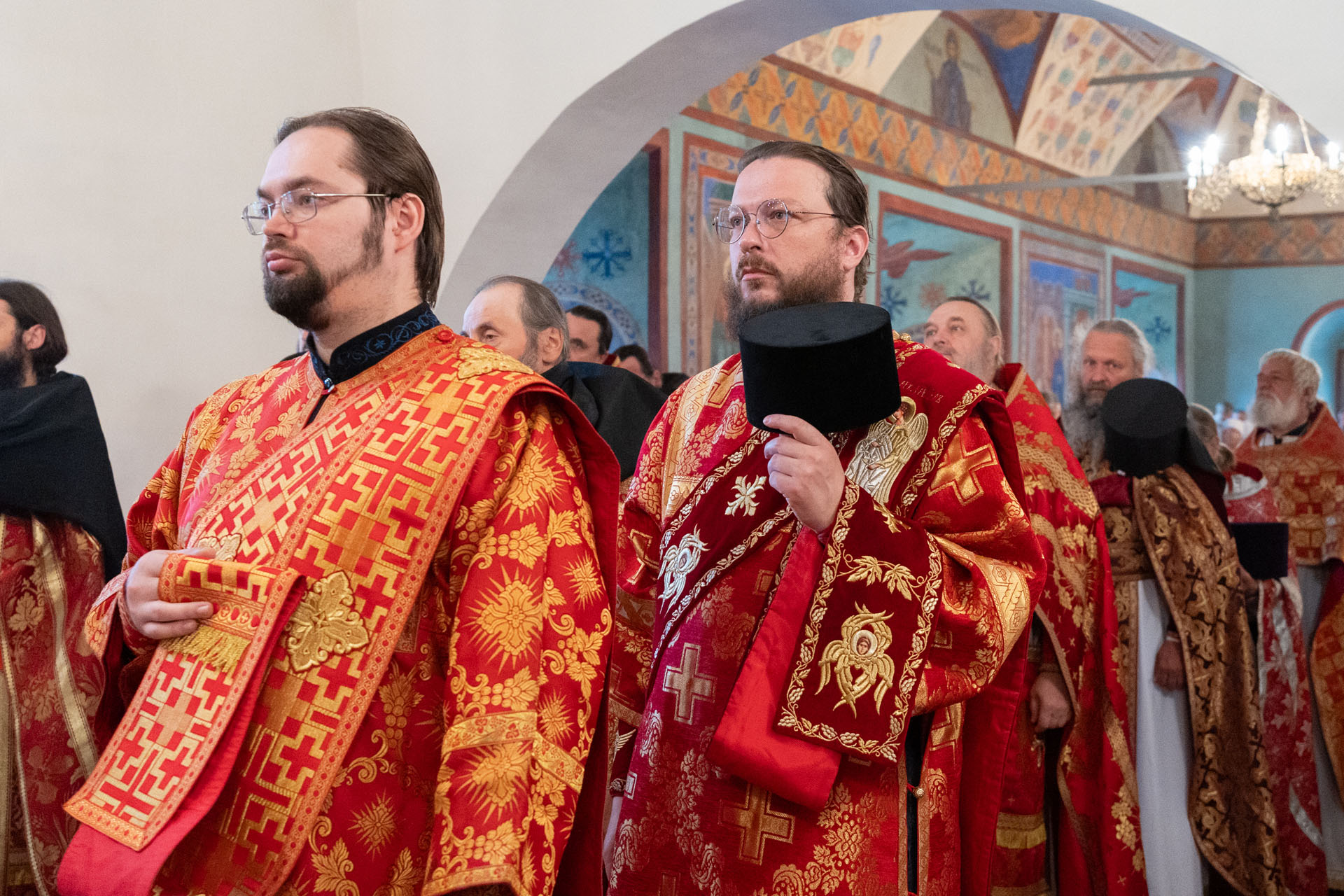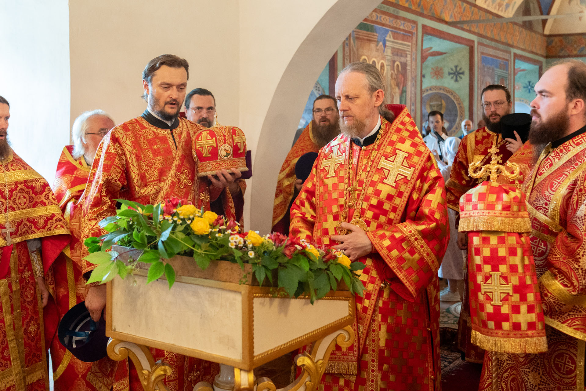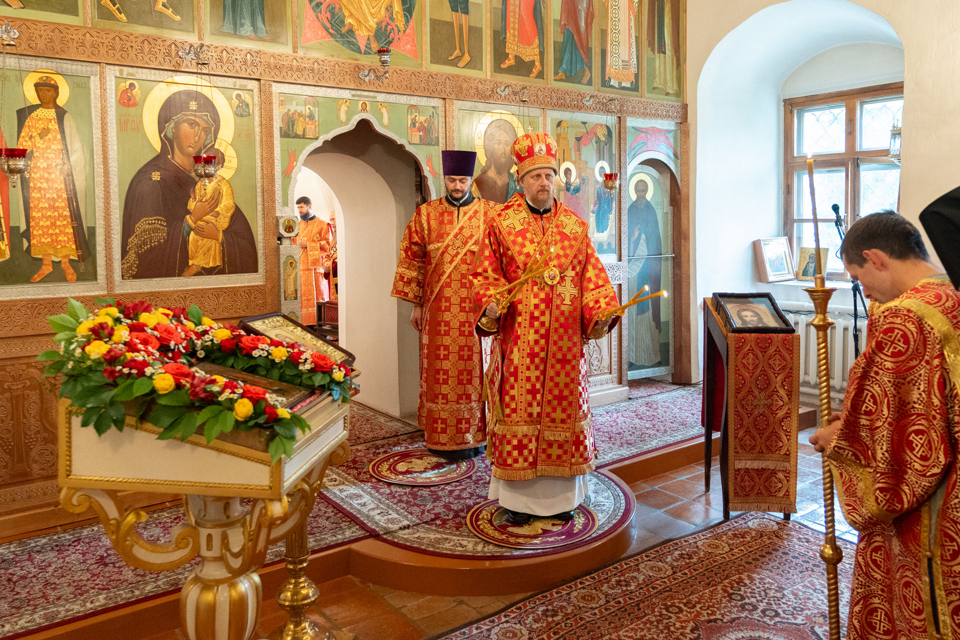 Его Преосвященству сослужили: благочинный монастырей епархии игумен Пантелеимон (Королёв), настоятель Борисоглебского монастыря игумен Иоанн (Титов), благочинный Борисоглебского округа протоиерей Сергий Васильев, благочинный Угличского округа игумен Николай (Шишкин), духовенство Переславской и Ярославской епархий.