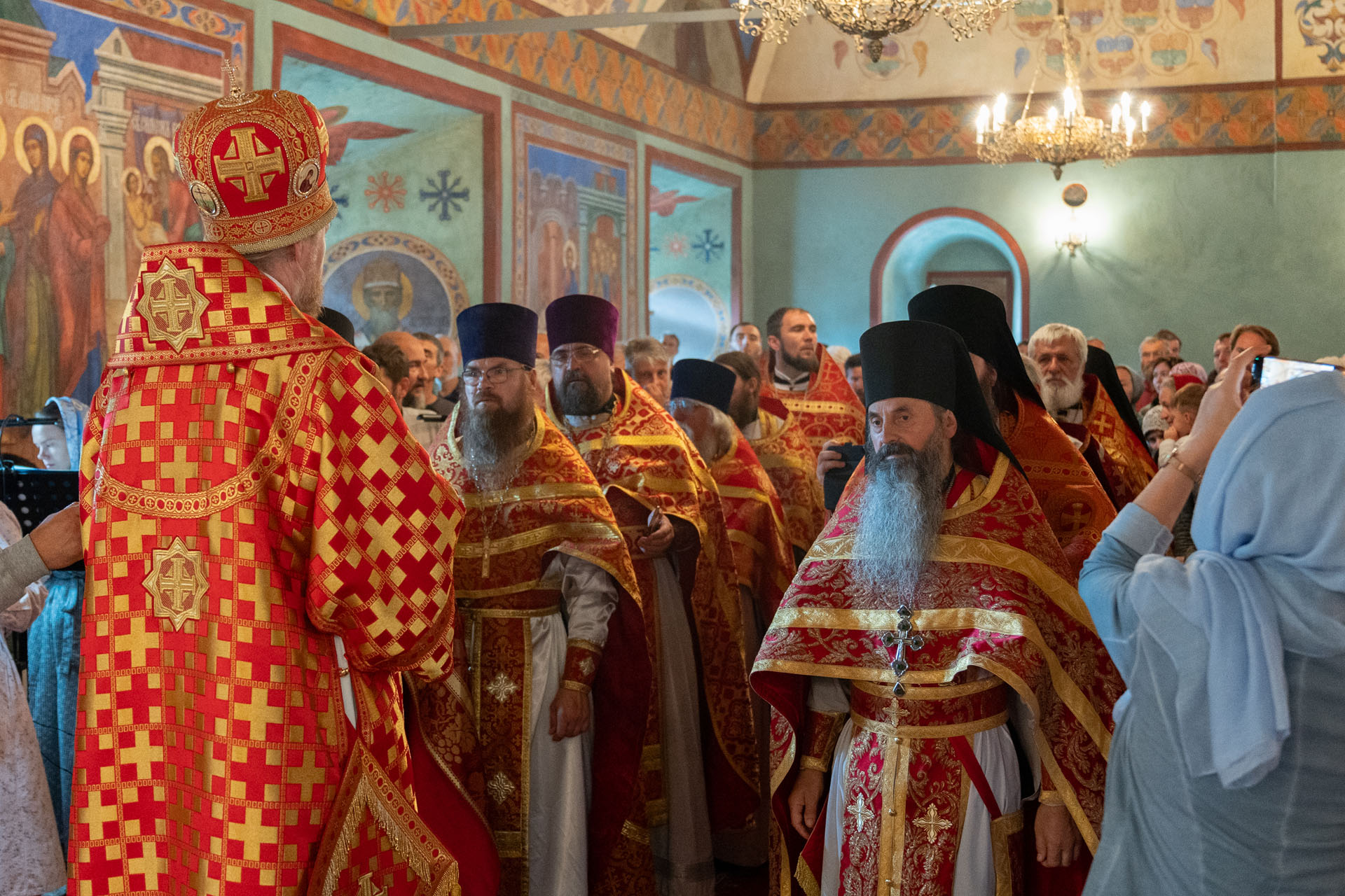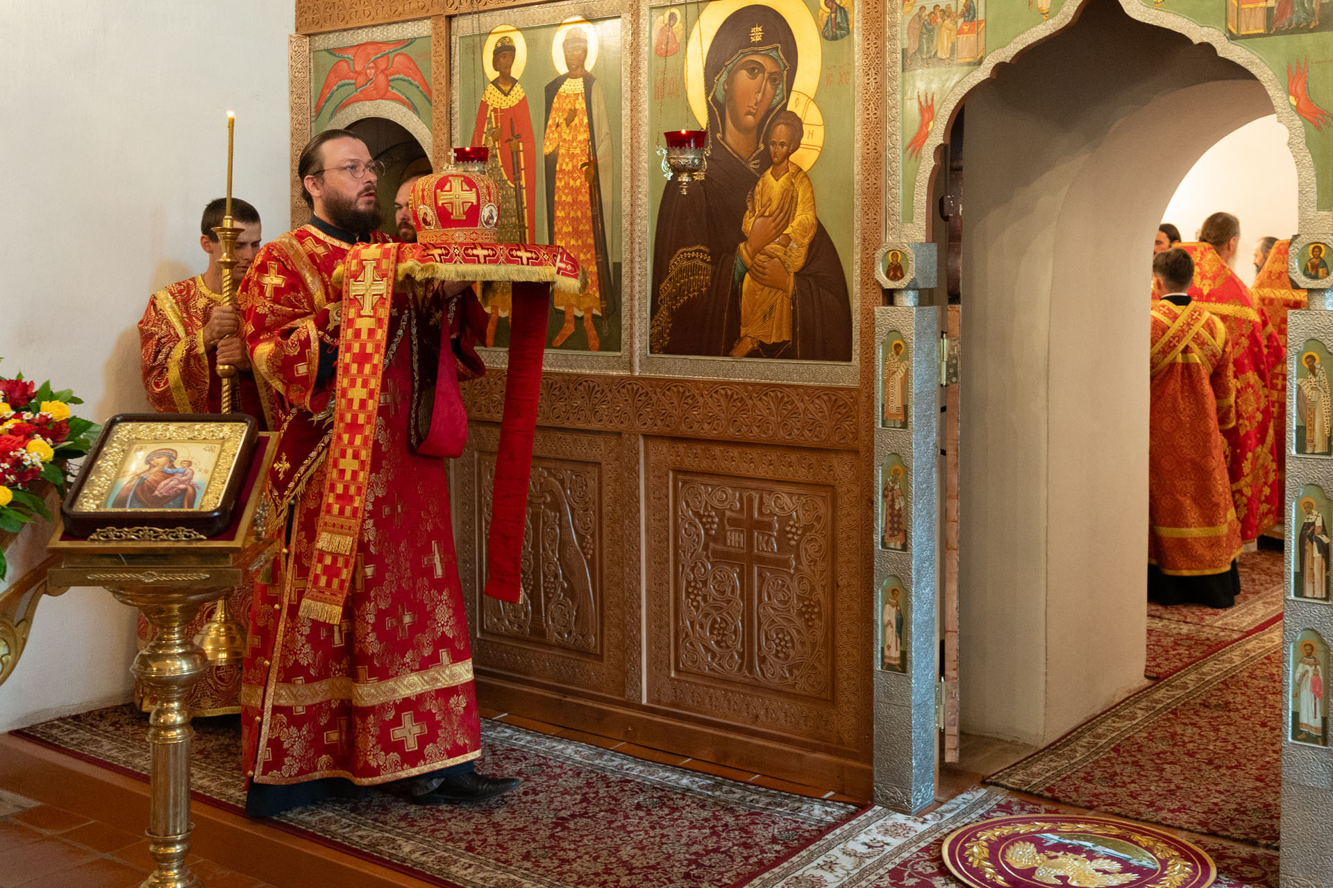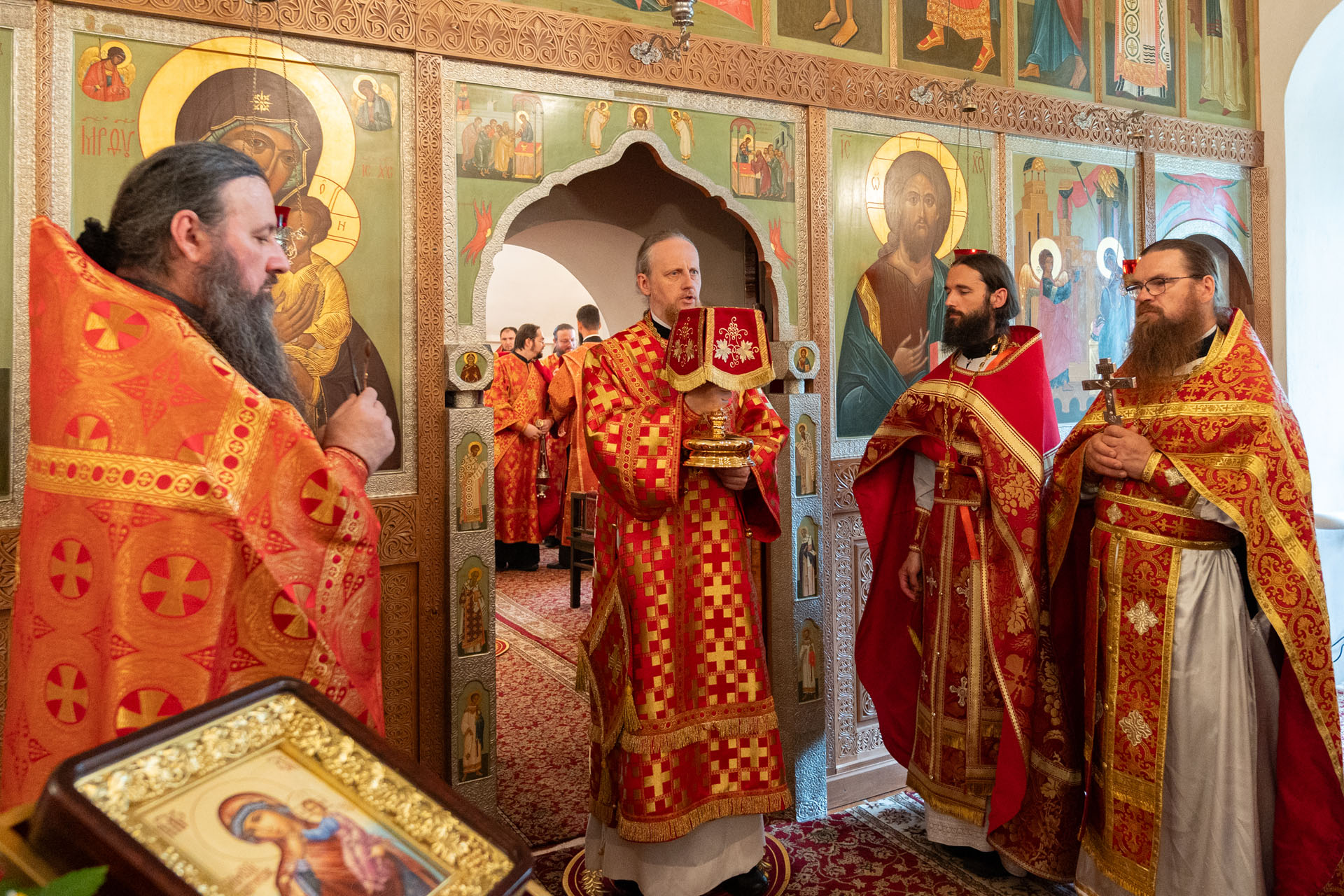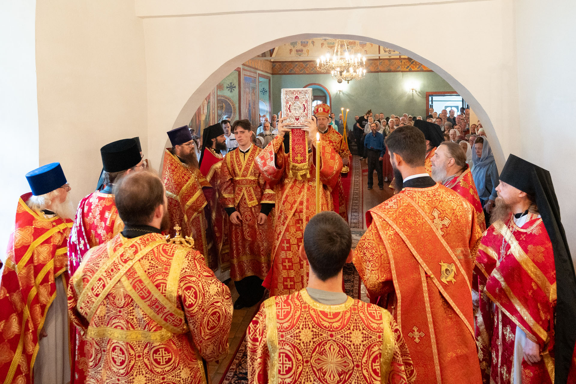 Его Преосвященству сослужили: благочинный монастырей епархии игумен Пантелеимон (Королёв), настоятель Борисоглебского монастыря игумен Иоанн (Титов), благочинный Борисоглебского округа протоиерей Сергий Васильев, благочинный Угличского округа игумен Николай (Шишкин), духовенство Переславской и Ярославской епархий.